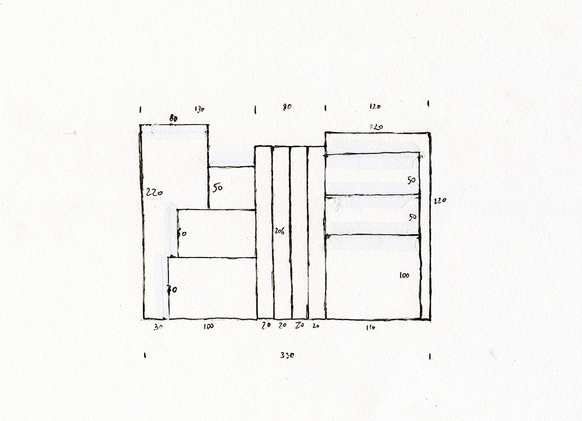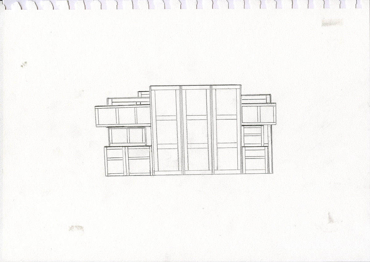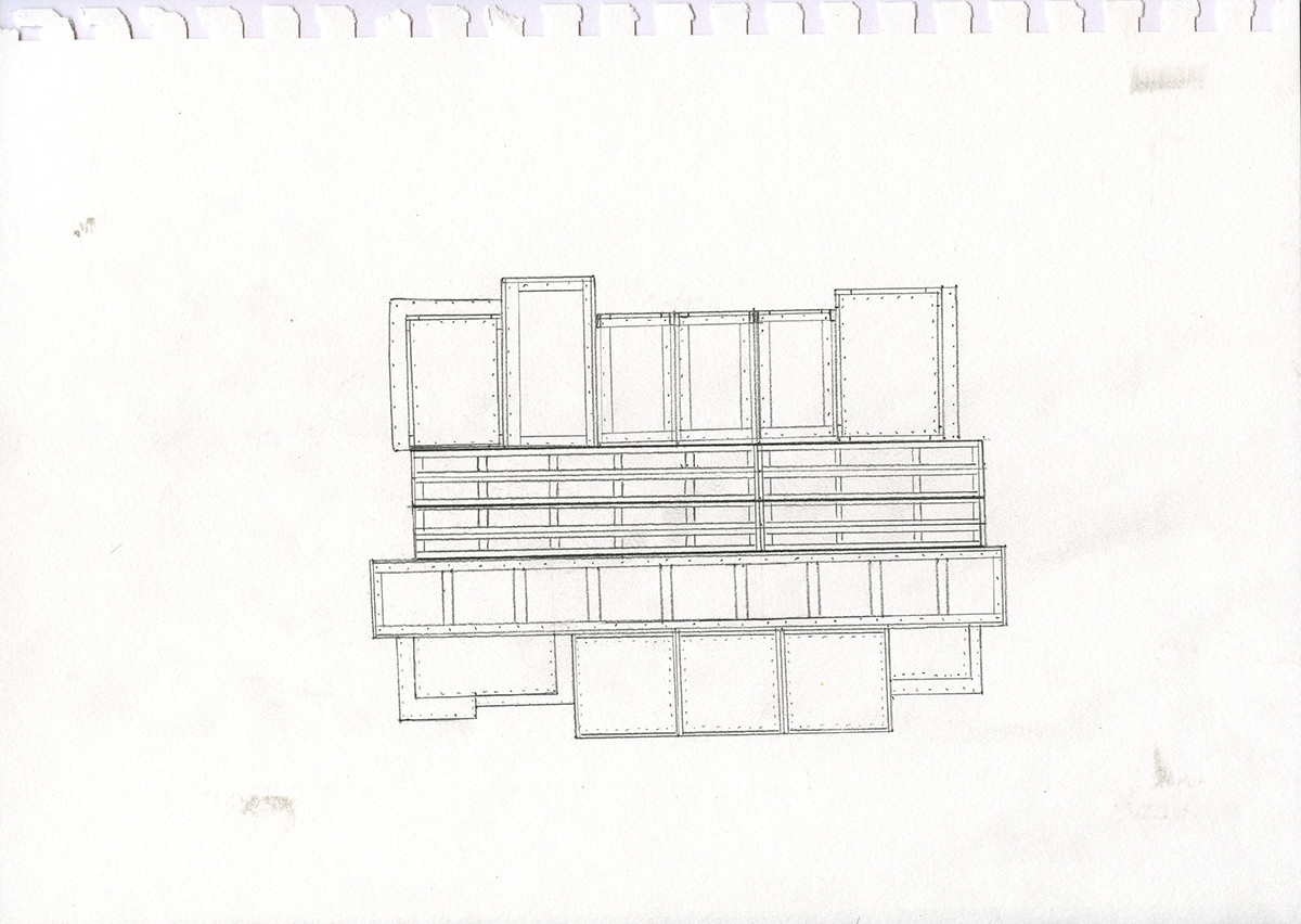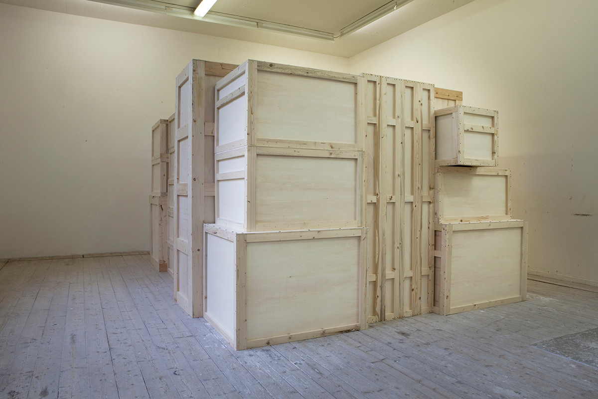Atlas, 2011, Holz, Schrauben, 230 x 465 x 320 cm, Ausstellungsansicht, Diplomausstellung, Universität für angewandte Kunst Wien